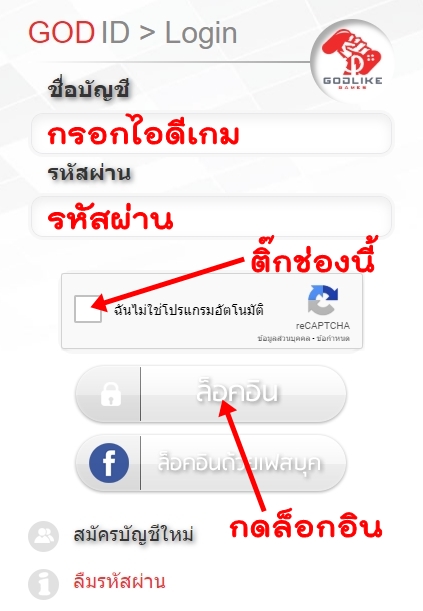 ขั้นตอนที่ 2 - ล็อกอินด้วยไอดีเกม GODLIKE Luna Online
