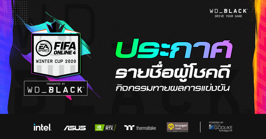 ประกาศรายชื่อผู้โชคดีจากกิจกรรมทายผล FIFA ONLINE 4 WINTER CUP 2020 Presented by WD_BLACK