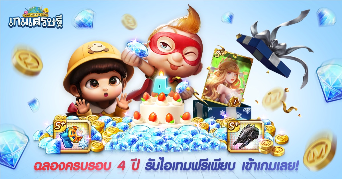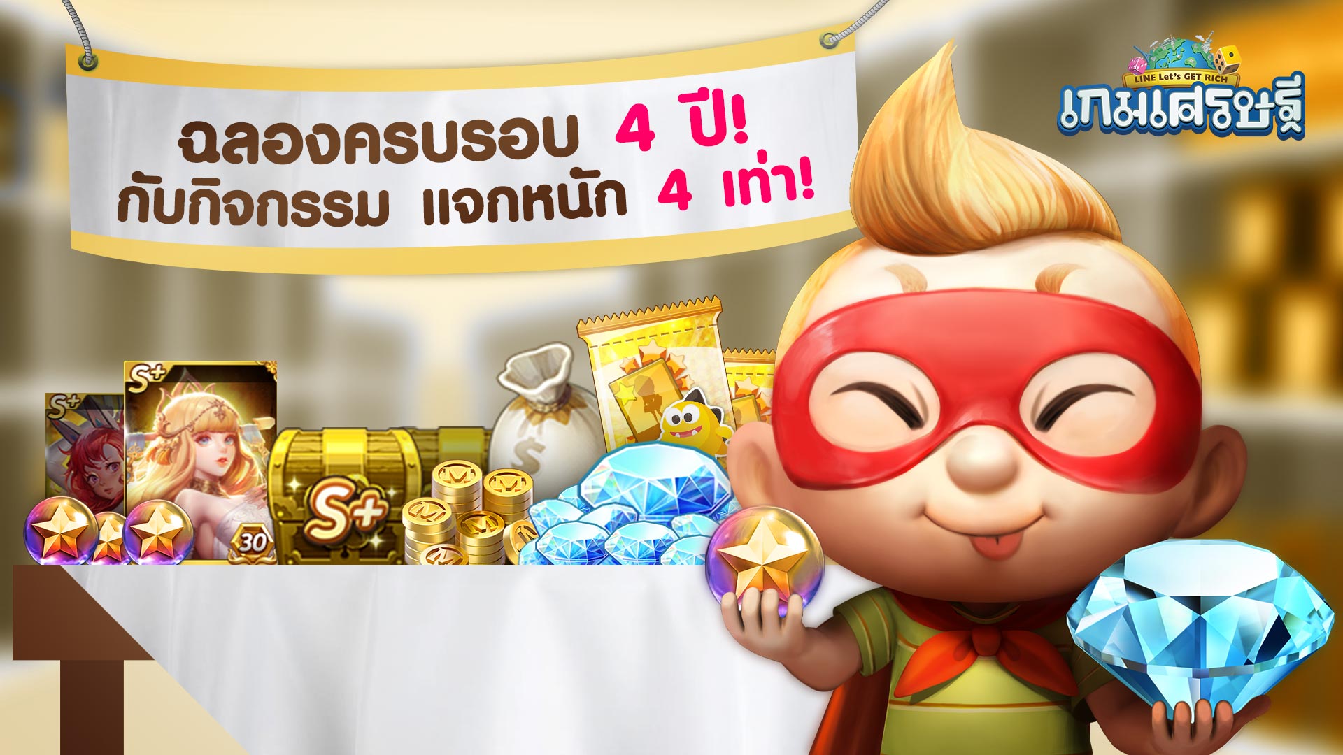 ร่วมฉลองเกมเศรษฐีครบรอบ 4 ปี เข้าเล่นเกมวันนี้ก็รับของรางวัลสุดพิเศษมากมายถึง 4 ต่อ!