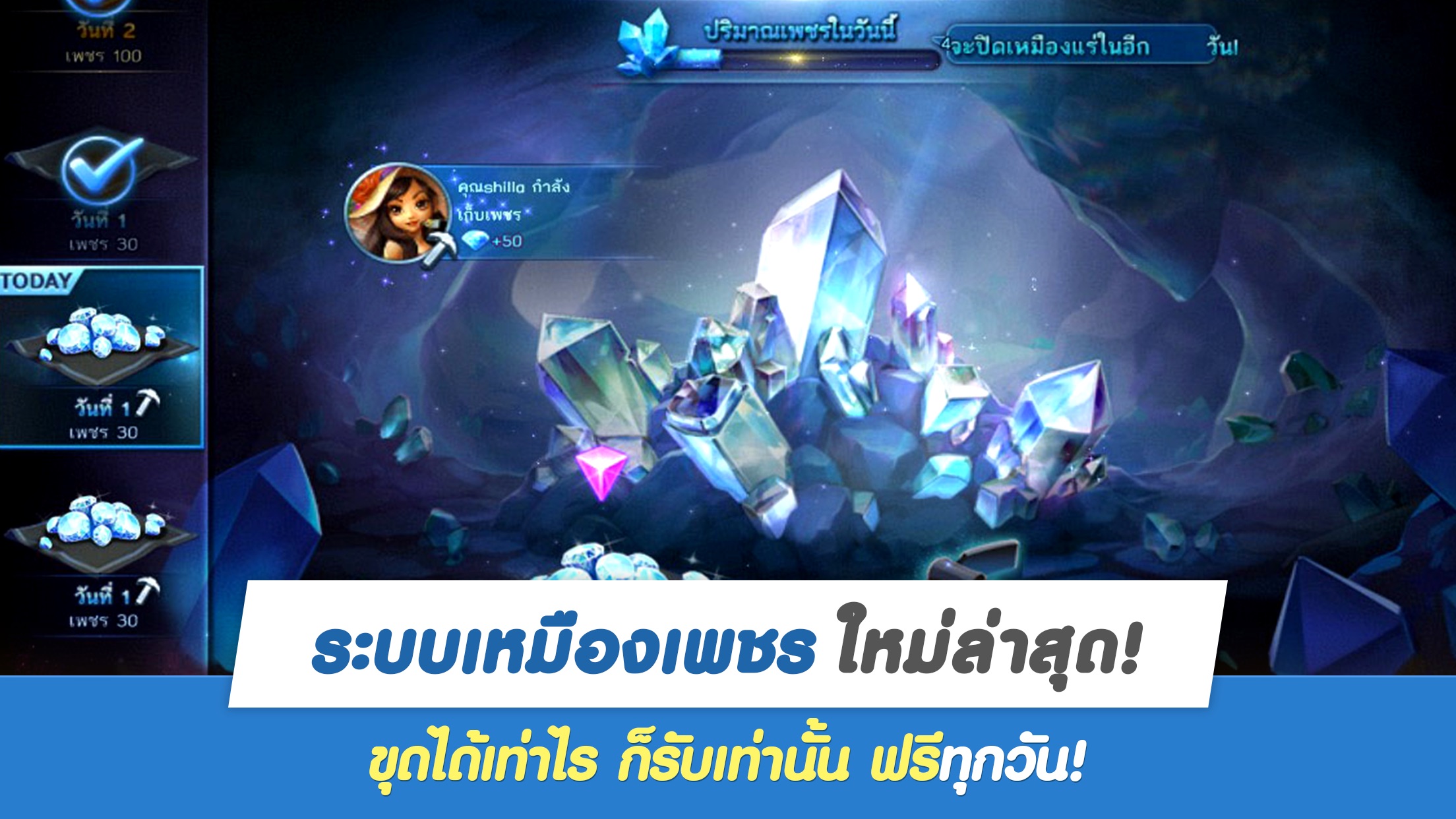 ระบบใหม่ล่าสุด! มาเป็นคนเหมืองกันเถอะ! ให้เพื่อนๆ สามารถรับเพชรฟรีได้ทุกวัน รับรองว่าระบบใหม่นี้ถูกใจใช่เลยแน่นอน! ได้เพชรฟรีทุกวันไม่ใช่เรื่องยากอีกต่อไป! เพราะระบบเหมืองเพชรจะช่วยให้ทุกคนสมหวังเอง! เพียงแค่เข้าสู่เหมืองและทำการขุดเพชร ขุดได้เท่าไหร่ก็รับเพชรตามที่ขุดได้ไปเลย!