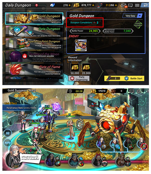 กิจกรรมที่สอง Gold dungeon x3 (สิ้นสุดวันที่ 1 ส.ค. 61) กิจกรรมนี้เป็นการเปิดโอกาสให้ผู้เล่นได้ลง Gold Dungeon ได้ถึง 3 ครั้งต่อวัน จากที่ปกติจะลงได้แค่ครั้งเดียวต่อวัน แล้วก็อย่าลืมไปใช้โควต้ากันให้คุ้มนะ รายละเอียดเพิ่มเติมที่ Gold dungeon x3