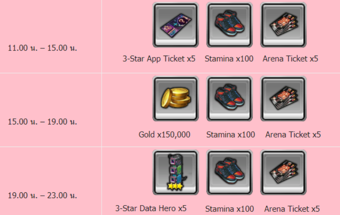 กิจกรรมที่สาม Pay day event (สิ้นสุดวันที่ 31 ก.ค. 61) เป็นกิจกรรมง่ายๆ เพียงแค่ล๊อกอินอยู่ในเกมตามช่วงเวลาที่กำหนด ก็จะได้ของรางวัลช่วงเวลาละ 3 ชิ้นตามภาพ แล้วของรางวัลก็จะไปอยู่ในกล่องจดหมายของเพื่อนๆ ซึ่งถ้าใครฟิตจัดก็ล็อคอินเล่นกันยาวๆ เลยก็ยังได้ หรือแค่ล็อกอินวันละ 3 ครั้งในช่วงเวลาดังกล่าวก็จะได้รับของเหมือนกัน รายละเอียดเพิ่มเติมที่ Pay day event
