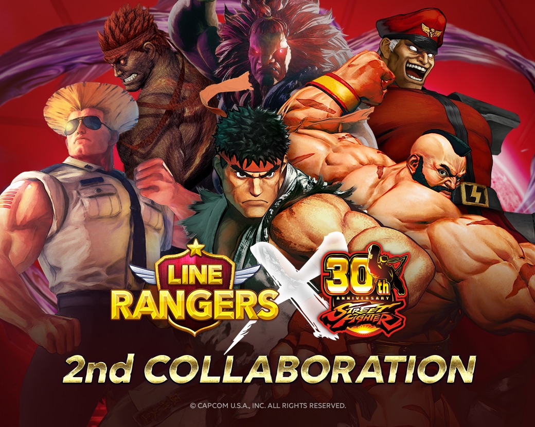 หลากนักสู้สุดคูลใน Street Fighter อย่าง “ซากุระ”, “โกคิ”, “แซนกีฟ” และ “คาริน” ตบเท้ามาร่วมทัพเรนเจอร์พร้อมการกลับมาอีกครั้งของตัวละครจากคอลลาโบครั้งก่อน “ริว”, “ชุนลี” และ “ไกล์” ให้คุณสัมผัสความตื่นเต้นกับแอ๊คชั่นพร้อมเอฟเฟกต์เสียงสุดพิเศษจากต้นฉบับ Street Fighter เมื่อตัวละครต่อสู้ในเกม ผู้เล่นสามารถหาตัวละครเหล่านี้ได้จาก Gacha, รางวัลล็อกอิน, รางวัลอีเวนท์พัซเซิล และช่องทางอื่นอีกมากมาย