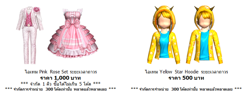 - เริ่มเปิดขายไอเทม เวลา 10.00 น. – 13.00 น.เท่านั้น