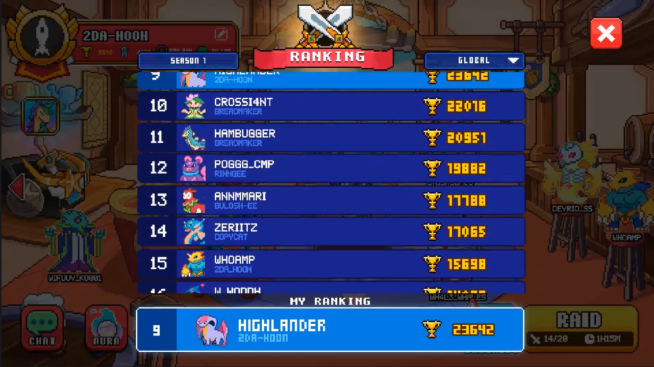 การต่อสู้จะมาพร้อมกับการจัดอันดับ โดยอันดับนั้นจะเป็นตัวชี้วัดความเก่งกาจของผู้เล่น กับระดับของรางวัลที่ได้รับหลังจากจบซีซั่น ซึ่งรางวัลซีซั่นจะมีทั้งแบบรายสัปดาห์ และแบบประจำซีซั่น ของรางวัลจะมีทั้ง $DGG และ $OPL