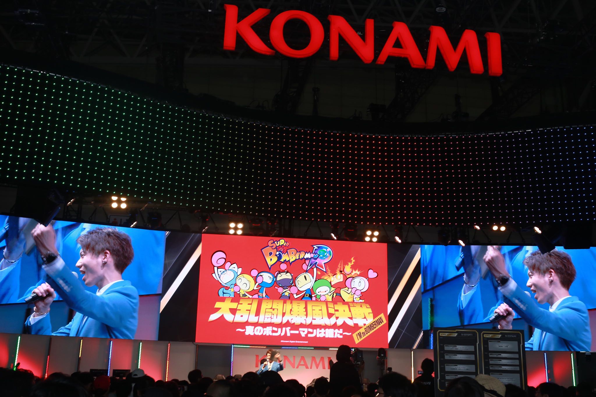 ทางด้าน Konami ก็ขนเกมในเครือมาไม่น้อยหน้ากว่าค่ายอื่นๆแทบจะทุกแพลตฟอร์ม ซึ่งเกมหลักๆที่น่าสนใจก็จะมีการอัพเดตของ Super Bomberman R และยังมีอีกหลายเกมที่น่าสนใจอย่าง Dankira!!! Boys, Be Dancing เป็น Musical เกมที่น่าจะถูกใจเกมเมอร์สาวๆไม่น้อย และนอกจากนี้ยังมีอัพเดตของYu-Gi-Oh! Dual Links และ Pro Evolution Soccer ที่รวมทั้งอัพเดตบนเวอร์ชั่นมือถือ และ Pro Evolutions Soccer 2019 ที่เอามามาโชว์ภายในงานนี้