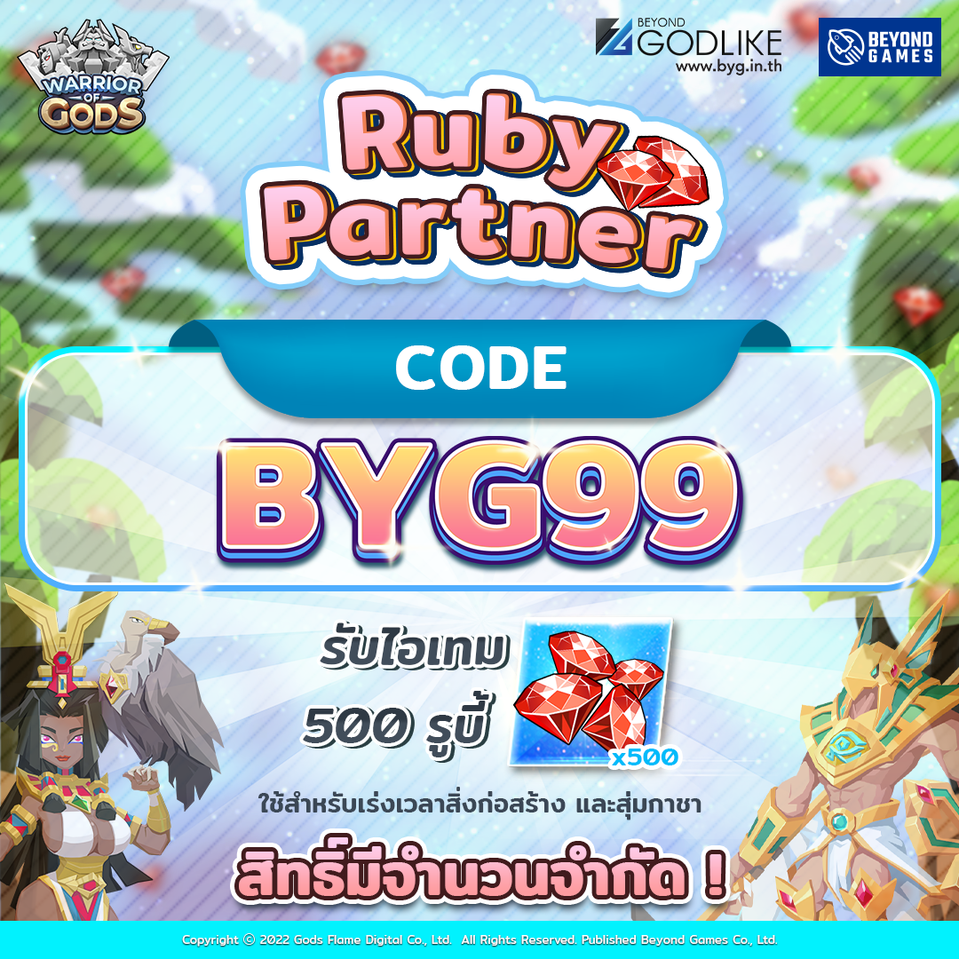 ให้นักรบแห่งสงครามมหาเทพทุกคนเก่งอย่างก้าวกระโดดด้วย “รูบี้” แจกไปใช้กันแบบจุก ๆ ไม่ว่าจะเร่งเวลาสิ่งก่อสร้างเพื่ออัปเลเวล หรือใช้สุ่มกาชาหาเทพเข้าร่วมทัพ