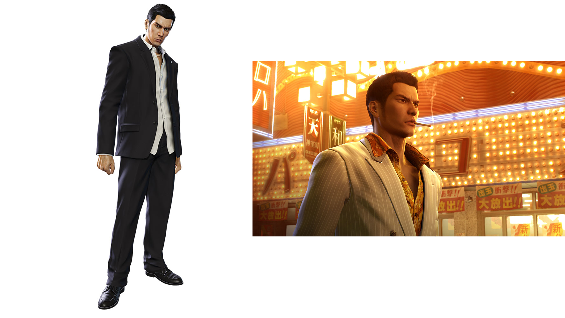 A member of the Dojima Family, a direct subsidiary of the Tojo Clan, the largest yakuza organization in Eastern Japan. Orphaned at a young age, he was raised in the Sunflower Orphanage established by Shintaro Kazama, the Dojima Family's lieutenant.