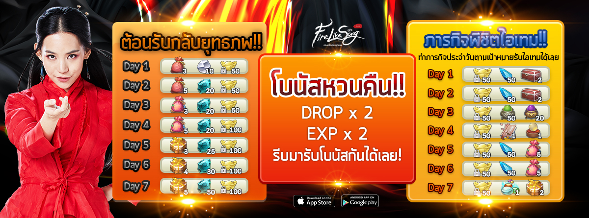 กิจกรรมเยอะขนาดนี้ แถมยังแจกเยอะขนาดนี้ ไม่กลับมาไม่ได้แล้ว!! ลับคมดาบของคุณให้พร้อม! แล้วไปพบกันในยุทธภพ Fire Like The Song!