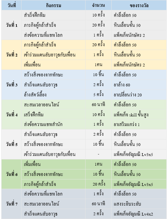 - การได้รับรางวัลจะอิงตามการกลับมาออนไลน์ครบ 3 วันเท่านั้น