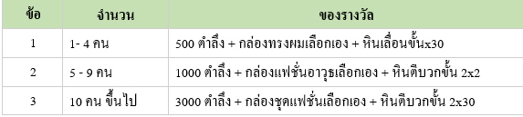 - หากชวนมา 10 คน แล้วออนไลน์ครบ 3 วันเพียง 4 คน จะได้รับรางวัลในข้อ 1.