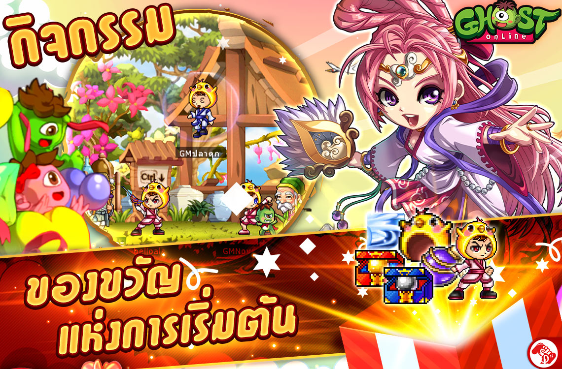 Ghost Online เกม MMORPG สุดฮอตจากค่าย GODLIKE Games ที่มาในสไตล์ 2D Pixel ที่จะพาเพื่อนๆ ผจญภัยในธีมของโลกวิญญาณ ล่าผีปีศาจ มีอาชีพให้เลือกมากมาย สกิลที่หลายหลาก ขอชวนเพื่อนๆ มาร่วมสนุกไปกับกิจกรรมสุดพิเศษ “ของขวัญแห่งการเริ่มต้น” ที่เพียงสร้างตัวละครใหม่ พร้อมเก็บเลเวลตัวละครให้ถึงเลเวล 50 เพียงเท่านี้ ก็รับฟรี ! รางวัลสุดพิเศษมากมาย คอสตูมหมวกลูกเจี๊ยบสุดน่ารัก พร้อมไอเทมที่จะมาช่วยในการเก็บเลเวลของเพื่อนๆ อีกมากมาย