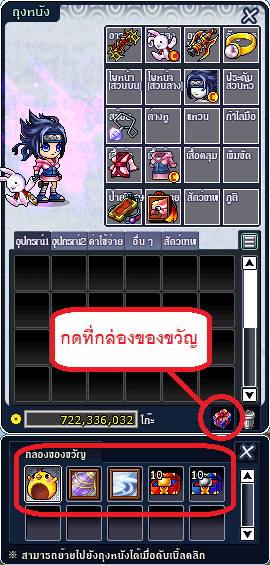 ** ไอเทมทั้งหมดสามารถย้ายเข้าคลัง Cash ได้ **