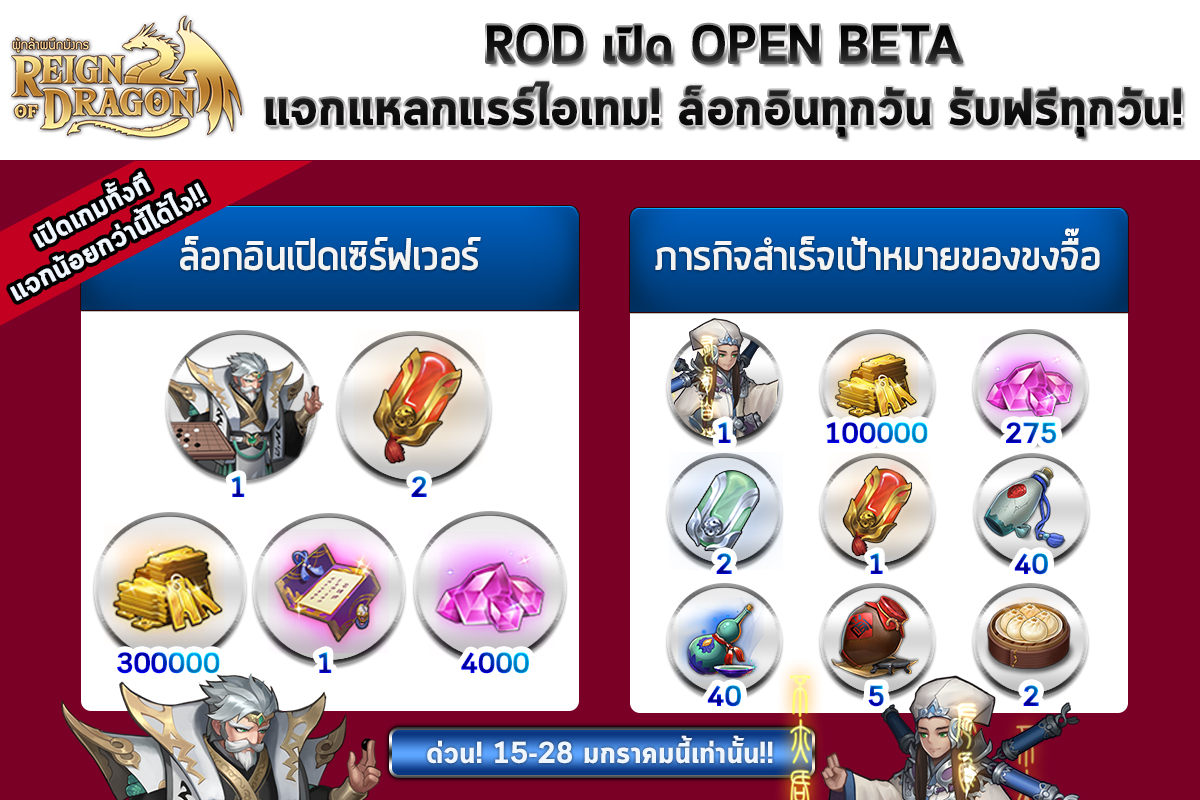 ของรางวัล กิจกรรมล็อกอินเปิดเซิร์ฟเวอร์