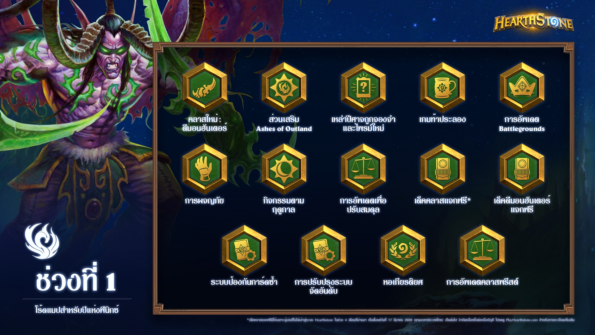 เออร์ไวน์, แคลิฟอร์เนีย—17 มีนาคม 2020—อีกไม่นาน ปีแห่งฟีนิกซ์จะผงาดใน Hearthstone™ ในวันที่ 8 เมษายน (ตามเวลาประเทศไทย) โดยปีใหม่ปีนี้จะมาพร้อมกับการเปลี่ยนแปลงครั้งยิ่งใหญ่สำหรับเกมการ์ดดิจิทัลยอดนิยมของ Blizzard ปีใหม่สุดร้อนแรงจะเริ่มต้นด้วยการเพิ่มดีมอนฮันเตอร์ คลาสใหม่ที่เพิ่มเข้ามาใน Hearthstone คลาสแรกนับตั้งแต่ที่เปิดให้เล่นเกม ผู้เล่นทุกคนจะได้รับคลาสดีมอนฮันเตอร์และอิลลิดัน สตอร์มเรจเป็นฮีโร่ไปใช้ได้ฟรี รวมไปถึงการ์ดใหม่ประจำคลาสอีก 30 ใบ นอกจากนี้ยังมาพร้อมกับเด็คที่จัดไว้ให้ เพื่อให้คุณสามารถเริ่มดวลการ์ดด้วยการ์ดใหม่เหล่านี้ได้ทันที การเปิดตัวคลาสดีมอนฮันเตอร์ยังมาพร้อมกับการประกาศส่วนเสริม Ashes of Outland™ ส่วนเสริมแรกในปีแห่งฟีนิกซ์ที่จะพาผู้เล่นเดินทางผ่านประตูมิติมืดไปสู่โลกที่แตกสลายและถูกทิ้งร้างเพราะสงคราม ซึ่งเป็นสถานที่หลักสำหรับการดำเนินเรื่องของ World of Warcraft®: The Burning Crusade® เมื่อปี 2007 นอกจากนี้ยังมีแผนเพิ่มคุณลักษณะใหม่ๆ การอัพเดต และกิจกรรมในเกมอีกมากมายให้กับ Hearthstone รวมไปถึงการเพิ่มเนื้อหาสำหรับโหมดเกม Battlegrounds อย่างยิ่งใหญ่