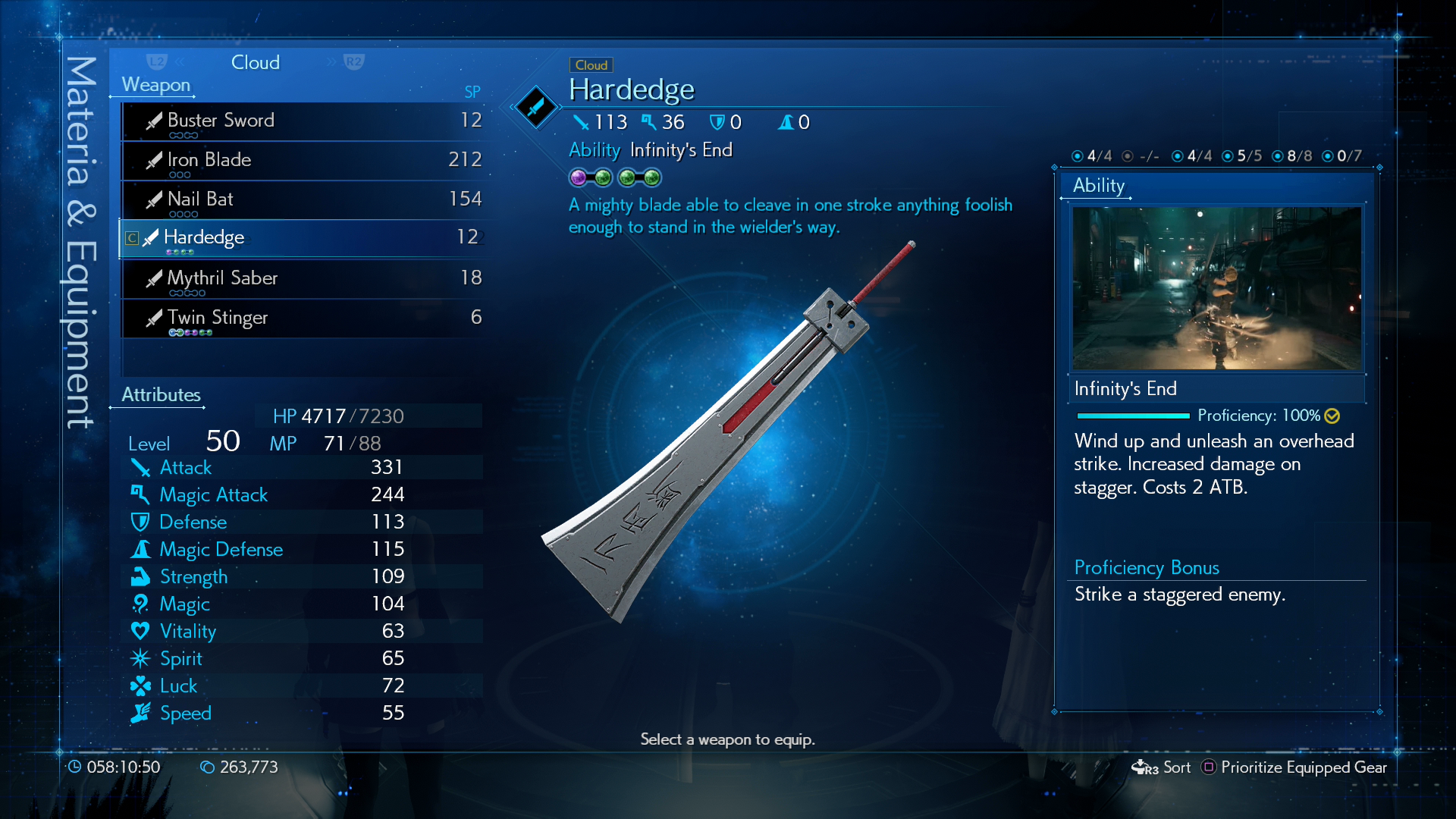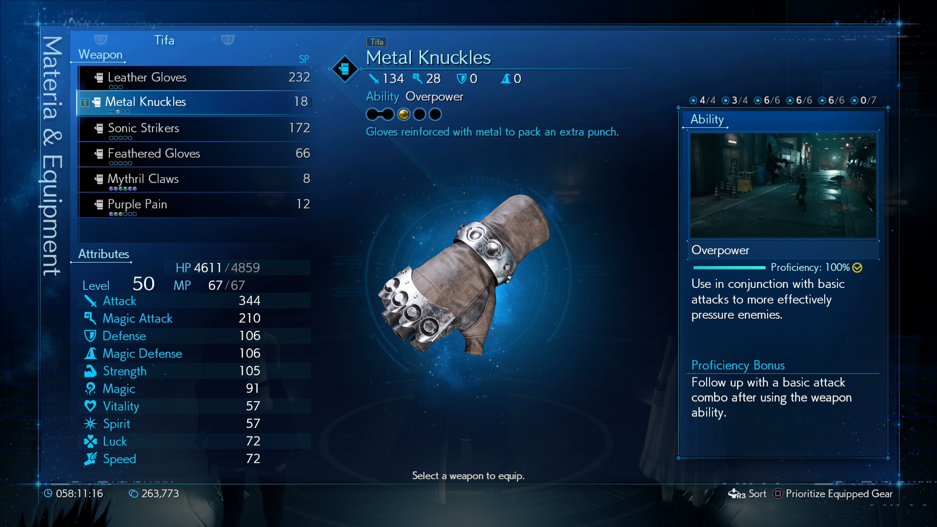 First Strike Materia ทำให้เริ่มการต่อสู้มาจะสามารถใช้เกจ ATB ได้ สามารถใส่ให้ Cloud หรือ Tifa เพื่อจะใช้เปิดการโจมตี หรือ ร่ายสกิล Barrier เพื่อเพิ่มพลังป้องกันก็ได้