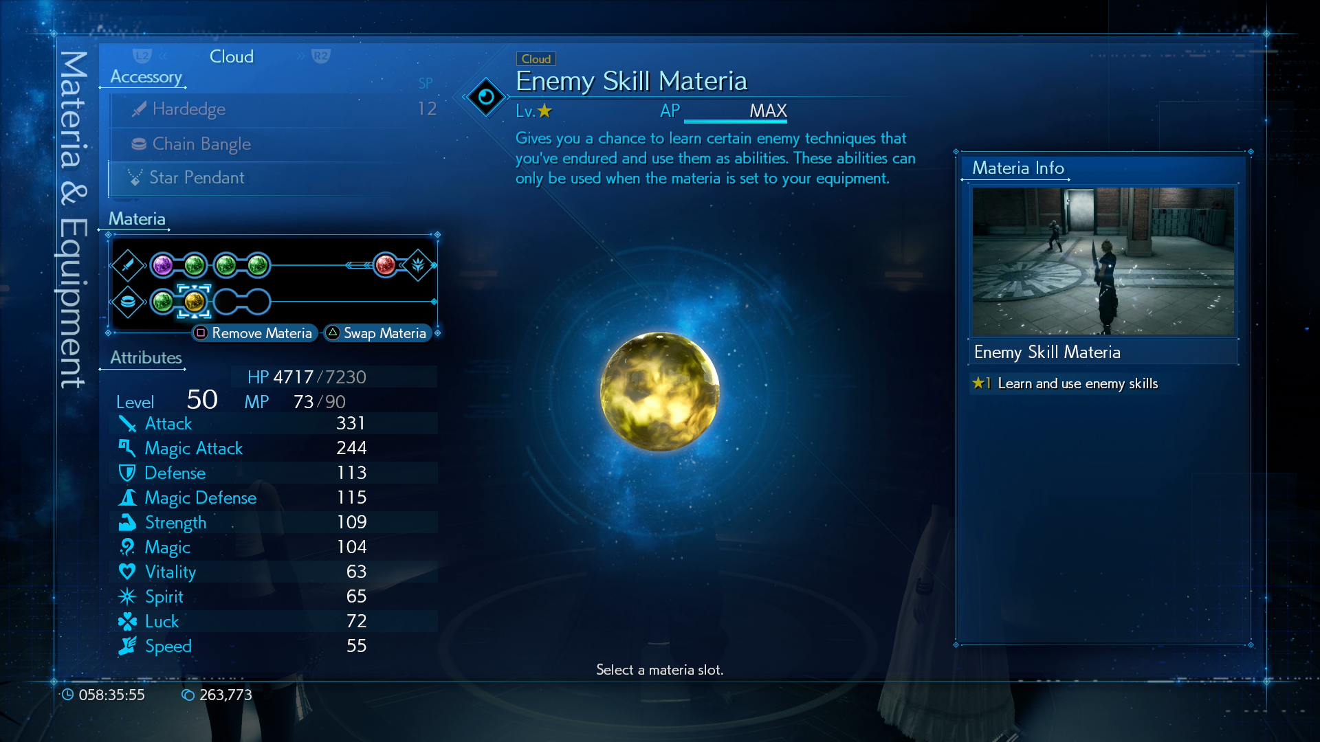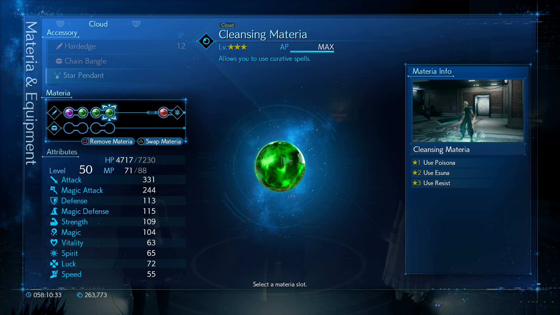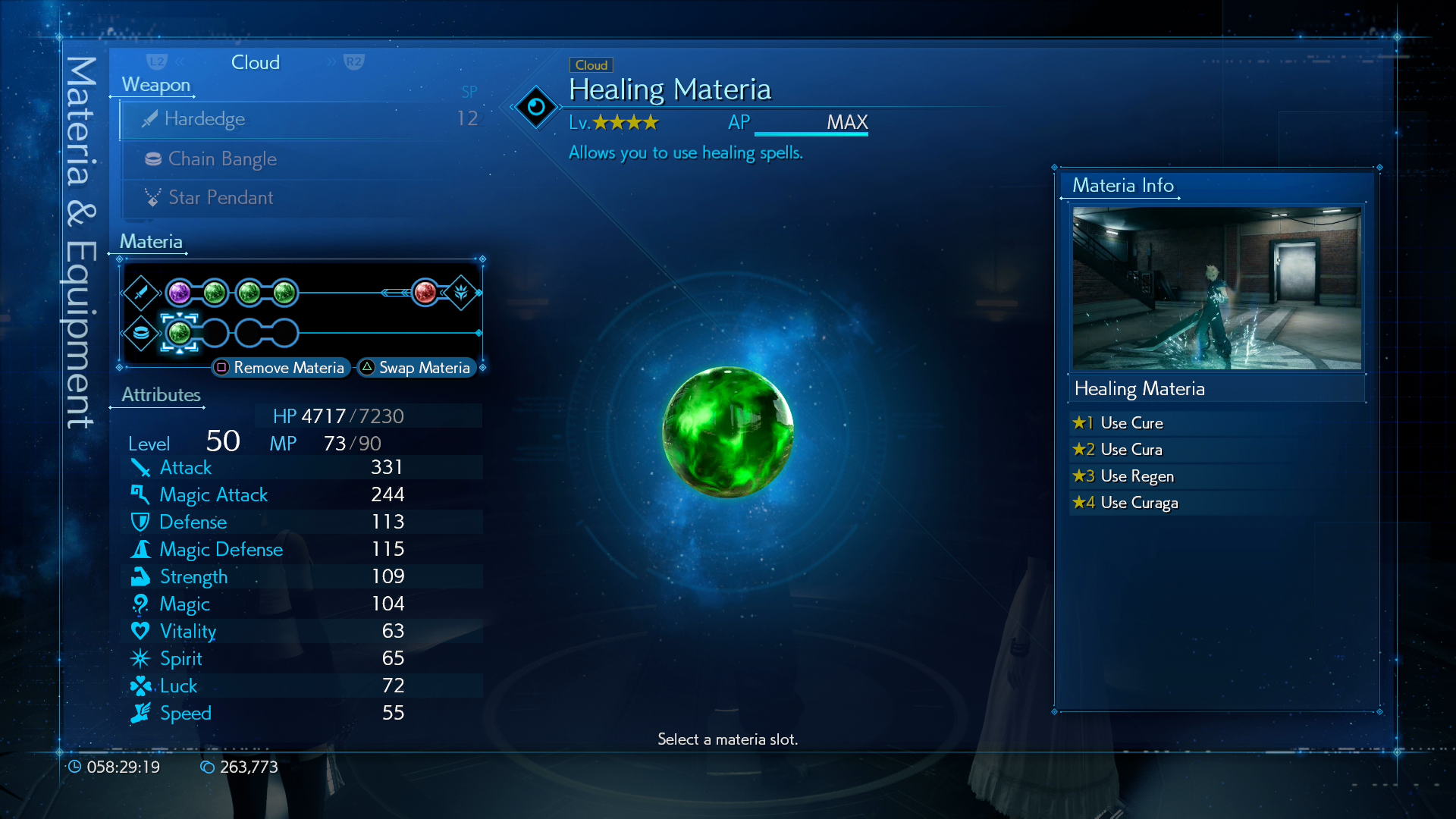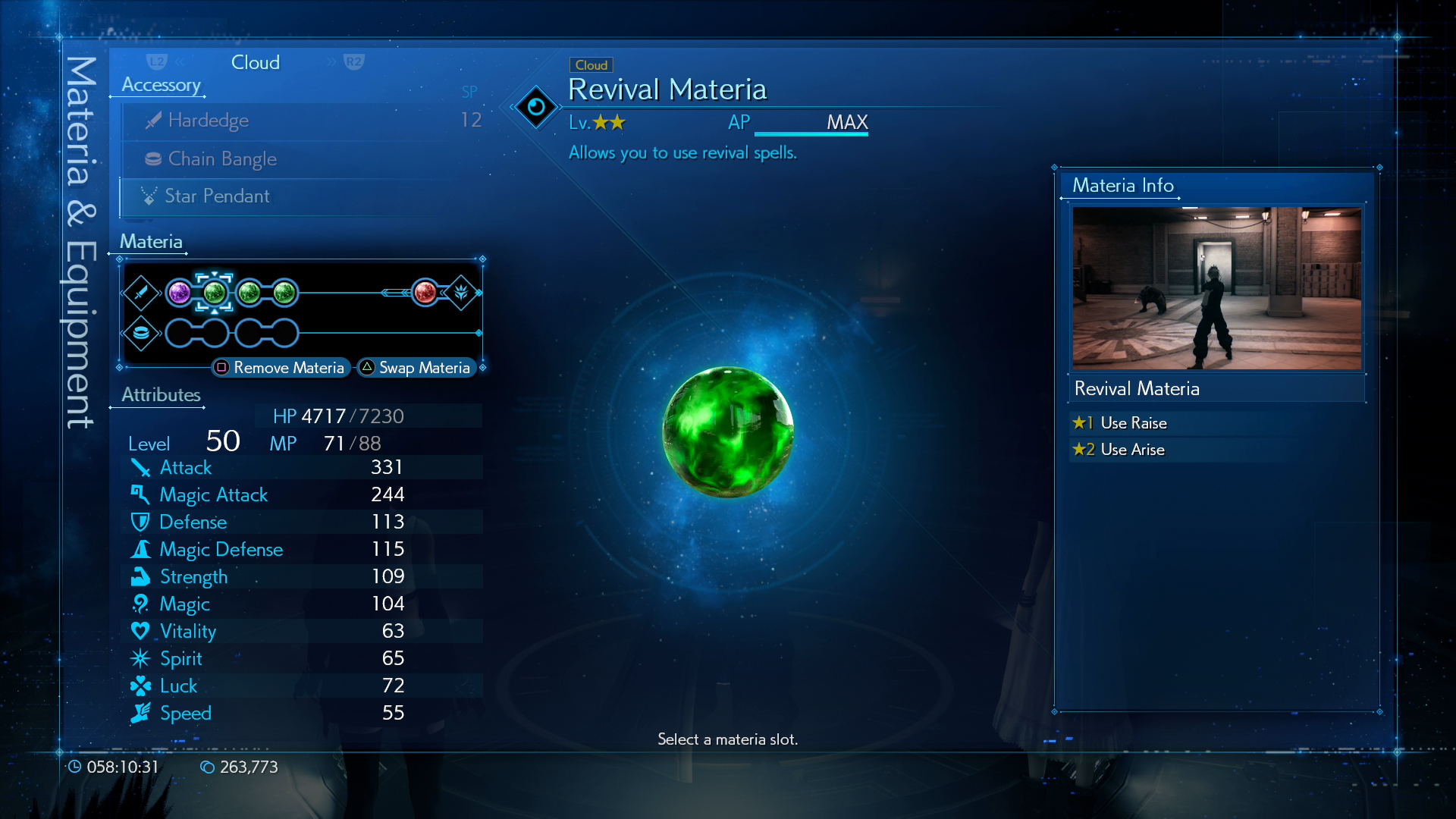ช่อง Materia ที่เหลือสามารถใส่สกิลตามสไตล์การต่อสู้ที่ถนัดของเราได้เลย โดยที่ผมจะใส่ Meteria อื่น ๆ เพิ่มคือ