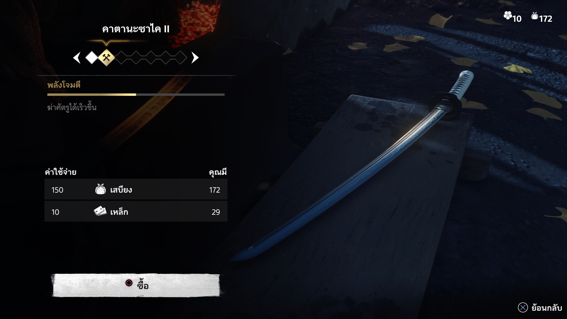 แน่นอนอยู่แล้วก็ต้องเป็น ดาบคาตานะ เพราะเป็นอาวุธหลักที่เราใช้สู้ถ้าดาเมจเราไม่เพียงพอจะทำให้โดนศัตรูล้อมแล้วรุมโจมตีได้ง่ายมาก รองลงมาคือชุดเกราะที่บอกไปในช่วงแรก ต่อจากนั้นแล้วแต่ความชอบเลยว่าจะอัพ มีด, ธนูสั้น, ธนูยาว(ได้ช่วงกลางเกม) การอัพเกรดมีดไม่ได้เพิ่มความแรงแต่อย่างใดเพราะเป็นการลอบฆ่าอยู่แล้วแต่จะเป็นการเพิ่มความไวในฆ่ามากกว่า ถ้าเราไม่อัพเกรดมีดเลยก็จะทำให้การลอบฆ่านั้นยากยิ่งขึ้น ส่วนตัวแอดจะอัพเกรดธนูเพราะสามารถลอบฆ่าได้เหมือนกันอีกทั้งยังเอาไว้ยิงถังระเบิดหรือฆ่าพวกสัตว์เลี้ยงของพวกมองโกลได้อีกด้วย