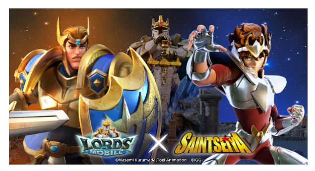 ในการร่วมมือกันครั้งนี้ ตัวละครยอดนิยม เพกาซัส เซย์ย่า (天馬星座の星矢(ペガサスのセイヤ)) จาก 『Saint Seiya』จะปรากฏตัวเป็นฮีโร่ใน Lords Mobile พร้อมทั้งกิจกรรม, สกินปราสาทพิเศษจำกัดช่วงเวลา, รูปลักษณ์บาเรียแบบพิเศษ, และระบบอื่นๆ ในเกมอีกมากมายที่อัพเดตมาให้ผู้เล่นได้เข้าร่วมกัน