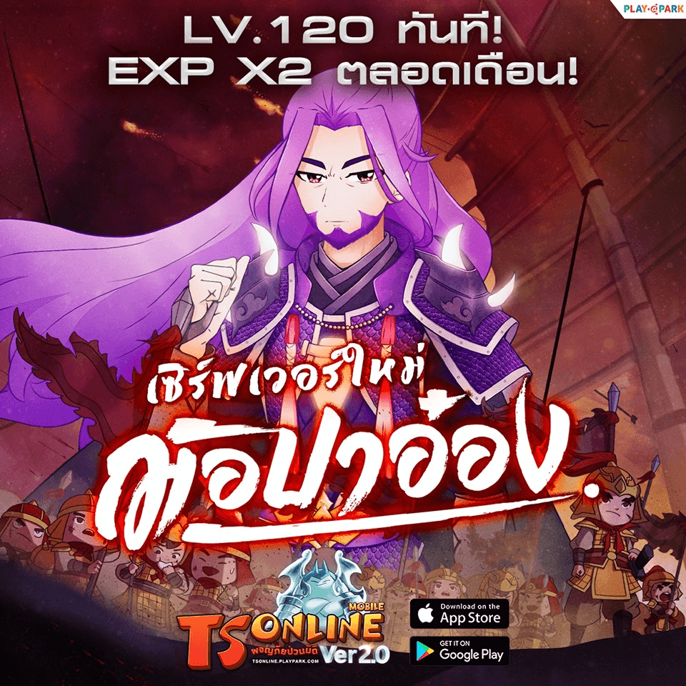 พร้อมเปิดตัวขุนพลใหม่ กวนอูมาร และ หานซิ่น อีกทั้งยังเปิดเซิร์ฟเวอร์ใหม่ล่าสุด ฌ้อปาอ๋อง มาพร้อมกับกิจกรรมสร้างตัวละครในเซิร์ฟเวอร์ใหม่ อัพเลเวล 120 ได้ทันที และจัดเต็ม EXP x2 ตลอดทั้งเดือนไปเลย TS Online Mobile ผจญภัยป่วนมิติ กับปาโต้เยา ดาวน์โหลดเล่นเลยทั้ง iOS และ Android สามารถติดตามข่าวสารและกิจกรรมอื่น ๆ ที่น่าสนใจเพิ่มเติมได้ทางหน้าเว็บไซต์ https://tsonline.playpark.com หรือที่ Facebook Page www.facebook.com/PlayPark.TSOnline.TH