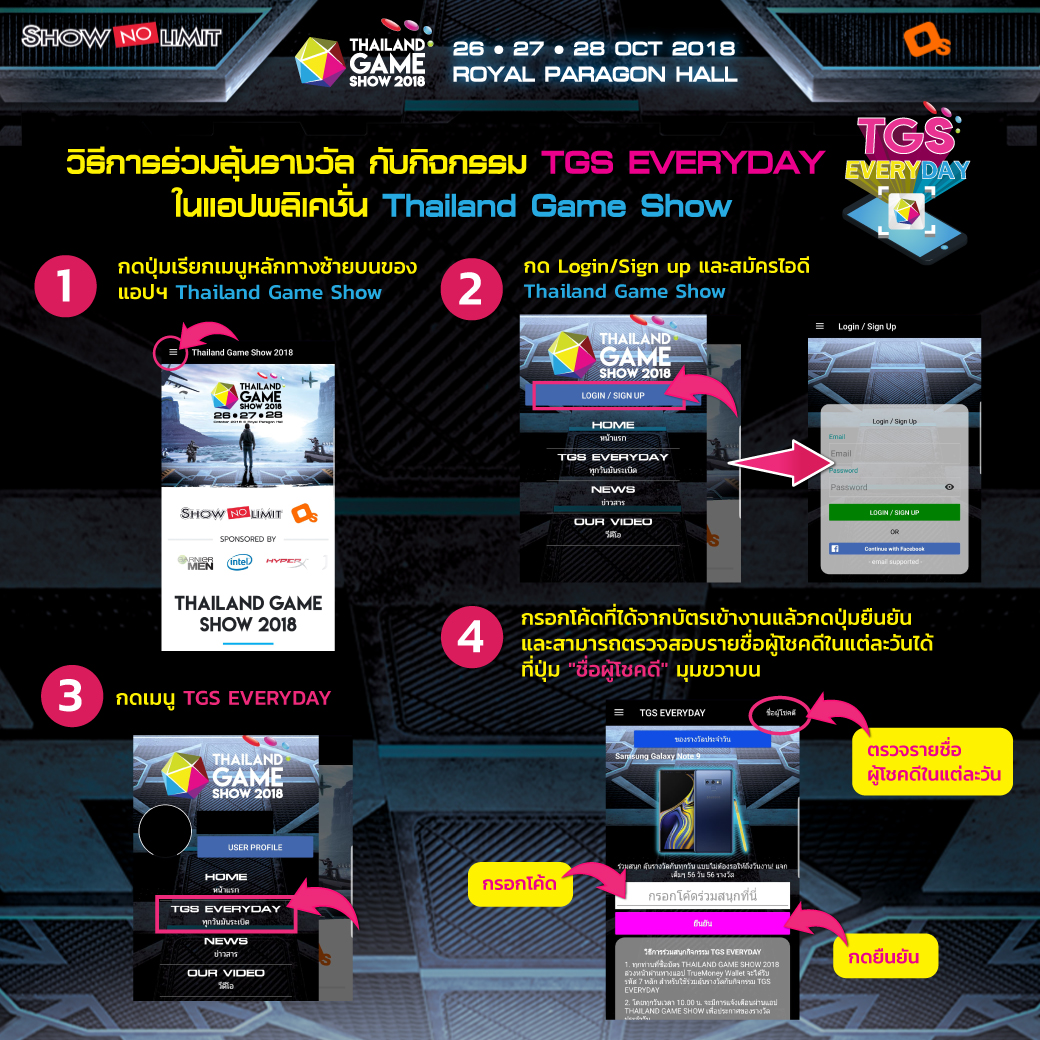 - นำรหัสมากรอกร่วมลุ้นรางวัลกับกิจกรรม TGS EVERYDAY ในแอป THAILAND GAME SHOW