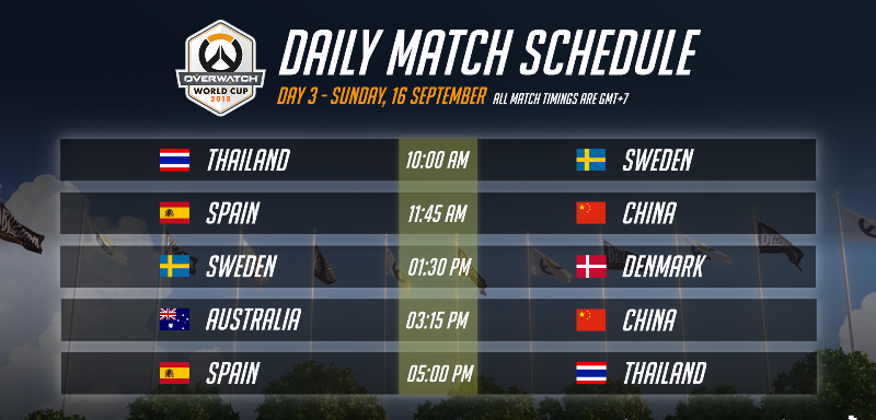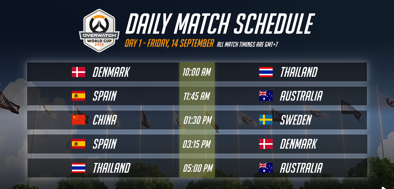 เกาหลีใต้และฟินแลนด์ผ่านเข้ารอบจากการแข่งขันที่อินชอน ส่วนสหรัฐอเมริกาและแคนาดาก็เอาชนะทีมอื่นๆ จากการแข่งขันที่ลอสแอนเจลิสมาได้ และตอนนี้การแข่งขัน Overwatch World Cup ก็กำลังมุ่งหน้าไปที่กรุงเทพฯ ประเทศไทย! มาร่วมฉลองการแข่งขัน Overwatch World Cup 2018 รอบแบ่งกลุ่มกับแฟนๆ ที่เอเชียตะวันออกเฉียงใต้ และรับชมการแข่งขันระหว่างผู้เล่น Overwatch ฝีมือดีที่สุดจากประเทศไทย ออสเตรเลีย จีน เดนมาร์ก สเปน และสวีเดนเพื่อตัดสินกันว่าสองทีมใดจะได้ผ่านเข้าสู่การแข่งขัน Overwatch World Cup รอบ 8 ทีมสุดท้ายที่งาน BlizzCon