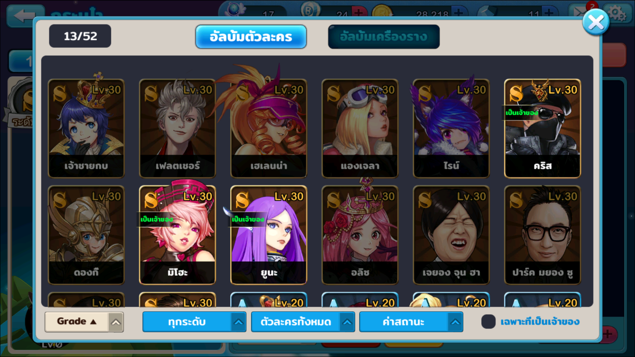 - มีโอกาสสุ่มเพื่อรับตัวละครระดับ S สามารถอัพเกรด รวมตัวละครได้ถึงระดับ S