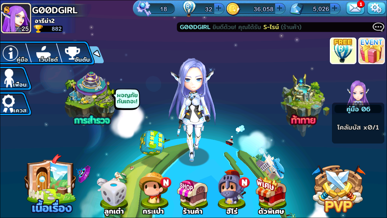 - บุกเบิก ท่องอวกาศ ย้อนเวลา !! ร่วมผจญภัยสู่การเดินทางไร้สิ้นสุด เพื่อรับของรางวัลสุดพิเศษในโหมดสำรวจ