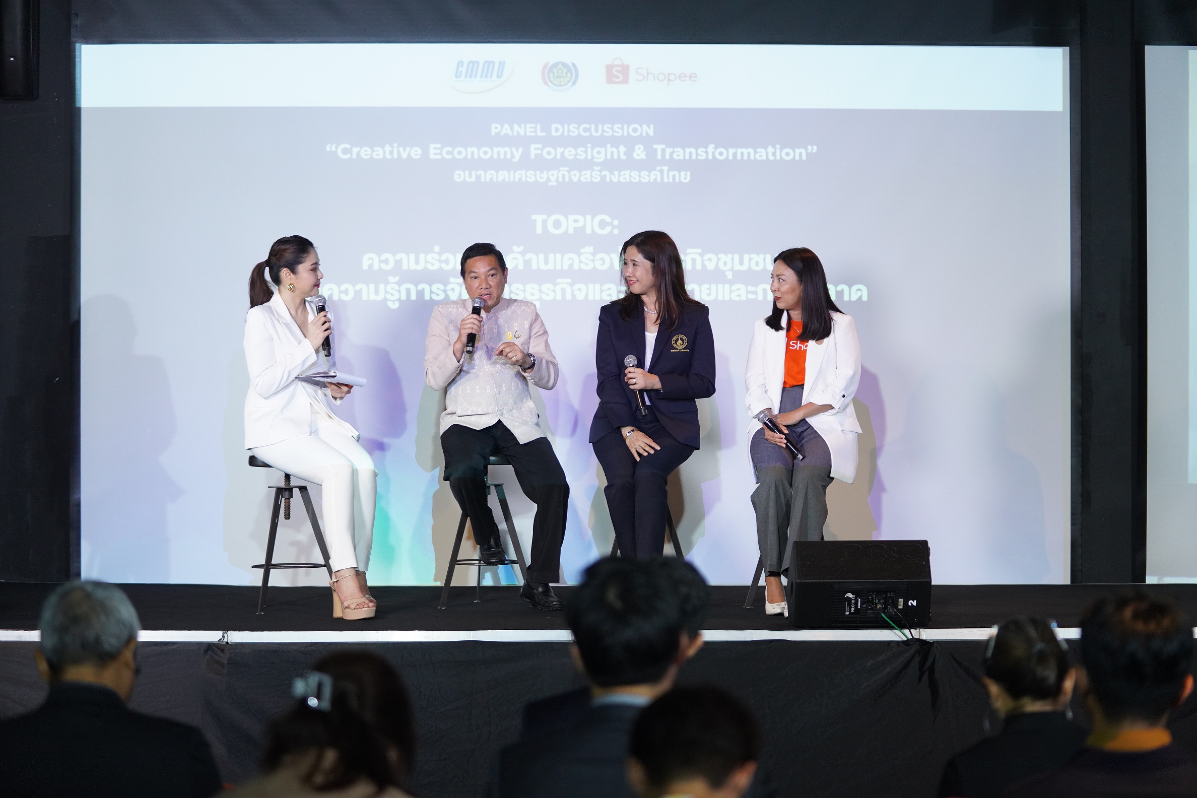 นอกจากนี้ ยังมีการจัดเสวนาภายใต้หัวข้อ “Creative Economy Foresight & Transformation” อนาคตเศรษฐกิจสร้างสรรค์ไทย โดยตัวแทนวิทยากรจากหน่วยงานและเครือข่ายองค์กรพันธมิตร เพื่อแลกเปลี่ยนความคิดเห็น มุมมอง ของหน่วยงานต่าง ๆ เกี่ยวกับเศรษฐกิจสร้างสรรค์ ซึ่งจะร่วมกันศึกษานโยบายและความร่วมมือหลากหลายด้าน ทั้งด้านนวัตกรรมและเทคโนโลยีเพื่อให้ธุรกิจสร้างสรรค์ปรับตัวให้ทันต่อการเปลี่ยนแปลงทางเทคโนโลยีและดิจิทัลอย่างฉับพลัน การขยายองค์ความรู้การจัดการธุรกิจสร้างสรรค์ แนวทางการลงทุนทางธุรกิจอย่างยั่งยืน การเข้าถึงแหล่งเงินทุนการส่งเสริมหรือสร้างแพลตฟอร์มสินค้าและบริการสร้างสรรค์ รวมถึงแนวโน้มของอุตสาหกรรมคอนเทนต์ไทย เพื่อให้ผู้มีส่วนได้ส่วนเสียในอุตสาหกรรมสร้างสรรค์สามารถกำหนดนโยบายและแนวโน้มของโครงการต่าง ๆ อันจะนำไปสู่การเพิ่มขีดความสามารถในการแข่งขันทางเศรษฐกิจของไทยได้” ดร.ชาคริต กล่าวเพิ่มเติม