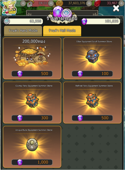 "หลังจากจบ Hell Mode จะได้รับ Crystal สามารถสะสม แล้วนำมาและไอเท็มได้ที่ร้านค้า Hell Mode"