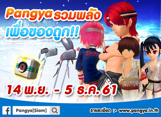 มาเเล้วการเเข่งขัน Pangya Tournament 2018 ศึกตีปัง หวดมันส์ยกห้อง ที่อบอุ่นและมันส์ที่สุดซึ่งผู้ที่ชนะสามารถเลือกรับรางวัลไอเทมเองได้ ทั้งนี้เพื่อน ๆ ทุกคนที่เข้าร่วมการแข่งขันจะได้รับไอเทมฟรีอีกด้วย โดยจะมีแมทช์ Wamp UP พิเศษ เพื่ออุ่นเครื่องและฝึกซ้อมฝีมือกันก่อนในวันพุธ ที่ 21 พ.ย.นี้ ก่อนจะเริ่มการแข่งขันจริงในวันที่ 30 พ.ย. 61 ซึ่งจะมีรายละเอียดการแข่งขันอย่างไรสามารถติดตามต่อกันได้ที่บนหน้าแฟนเพจ www.facebook.com/PangyaSiam รับรองมันส์และอบอุ่นเหมือนเดิมแน่นอน!!