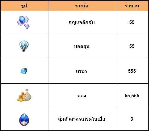 ***ของรางวัลจะถูกส่งให้ทาง “ระบบจดหมาย” ภายในเกม***