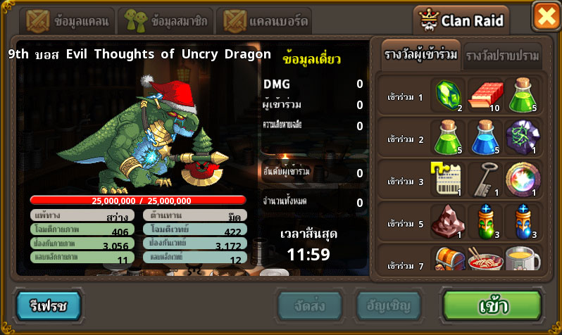 - เมื่ออัญเชิญบอสแคลน จะมีโอกาสพบกับ Evil Thoughts of Uncry Dragon