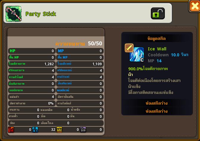 - สำหรับอาชีพ Warrior เมื่อผู้เล่นผสมอาวุธระดับ SSR จะมีโอกาสได้รับอาวุธ กระบอง Party Stick ซึ่งมีสกิล Ice Wall