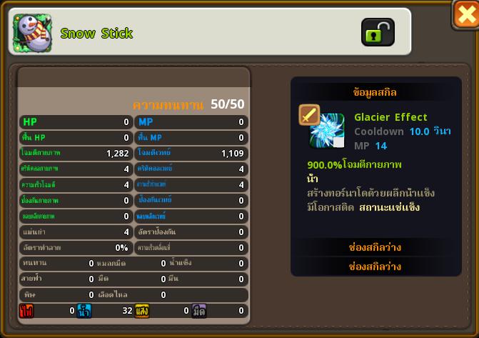 - สำหรับอาชีพ Wizard เมื่อผู้เล่นผสมอาวุธระดับ SSR จะมีโอกาสได้รับอาวุธ หอก Snow Stick ซึ่งมีสกิล Glacier Effect