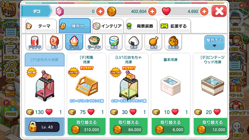 เรามาจัดแต่งร้านสะดวกซื้อของเราให้กลายเป็นร้านในฝันกันเถอะ ซึ่งภายในเกมของเรามีเฟอร์นิเจอร์สำหรับลงสินค้ามากมาย หลากหลายสไตล์ให้เลือก มิกซ์แอนด์แมทซ์เองได้เต็มที่