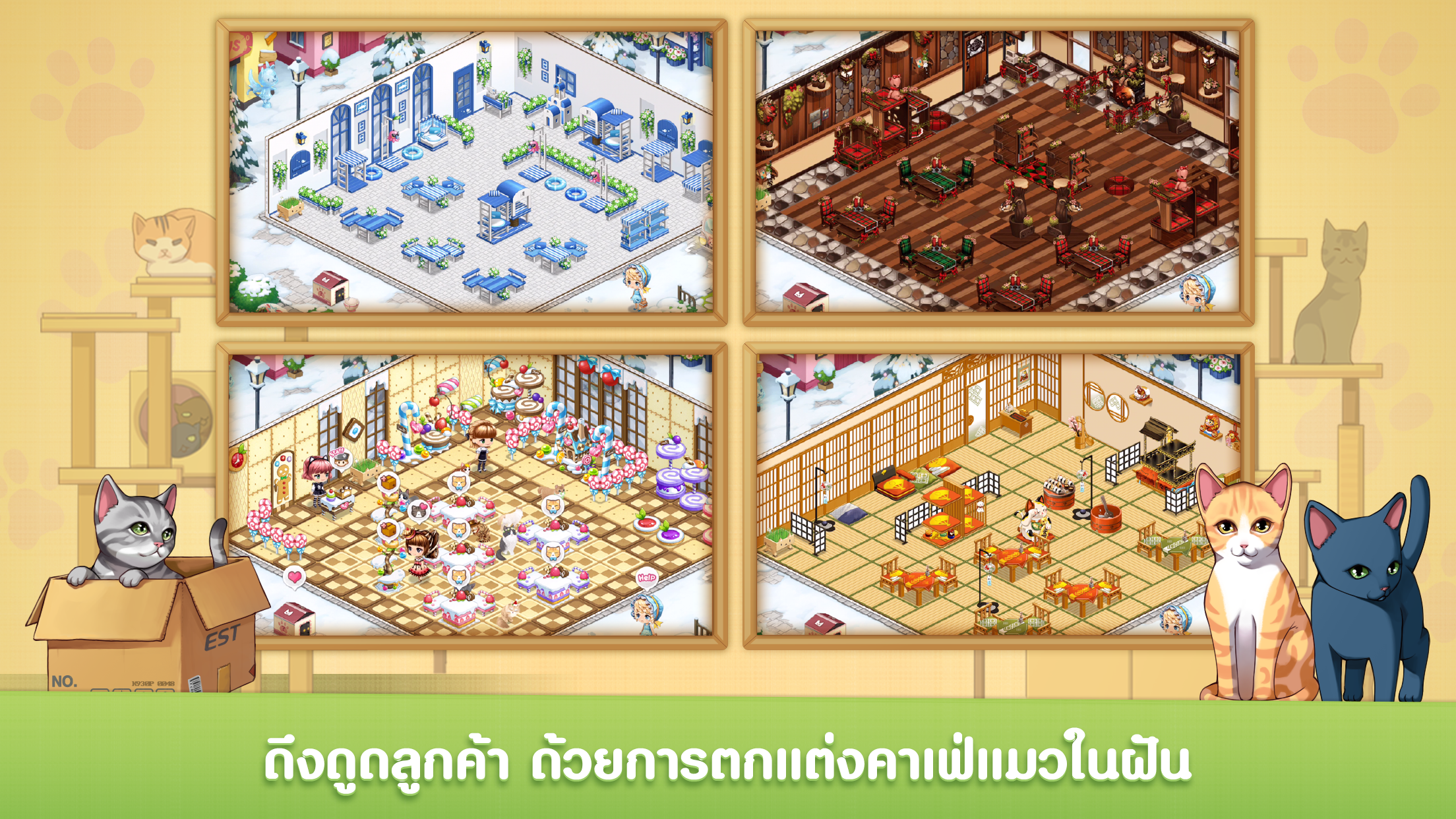 LINE GAME เตรียมเปิดให้บริการเกมใหม่ล่าสุด LINE Cat Cafe เกมบริหารร้านคาเฟ่แมวเหมียวชื่อดังจากประเทศเกาหลีและญี่ปุ่นแล้ววันนี้! ตอบรับกระแสคาเฟ่แมวสุดฮิตด้วยร้านแสนอบอุ่นที่จะให้ผู้เล่นได้บริหารจัดการคาเฟ่แมวในฝัน อัดแน่นไปด้วยเหล่าเหมียวขนปุยมาพร้อมความสดใสที่จะทำให้ทุกคนใจละลาย หากวันนี้คุณอยากมีคาเฟ่แมวเป็นของตัวเอง ~