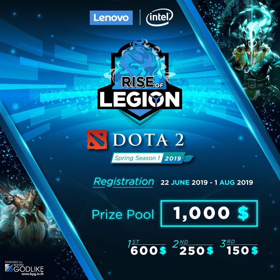 เริ่มที่ “Rise of Legion: Dota2 Spring Season 1 2019” รายการแข่งขันเกม Dota2 ชิงเงินรางวัลรวม 1,000 USD รายการนี้ปิดรับสมัครไปแล้ว แต่สามารถติดตามการแข่งขันและร่วมลุ้นไปด้วยกันได้ ว่าใครจะเป็นผู้ชนะในรายการนี้