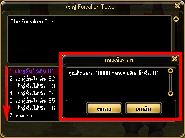 จากนั้นกดพูดคุยกับ NPC ก็จะสามารถเข้าสู่หอคอยได้เลยทันที โดยมีค่าใช้จ่ายในการเข้าหอคอยดังนี้