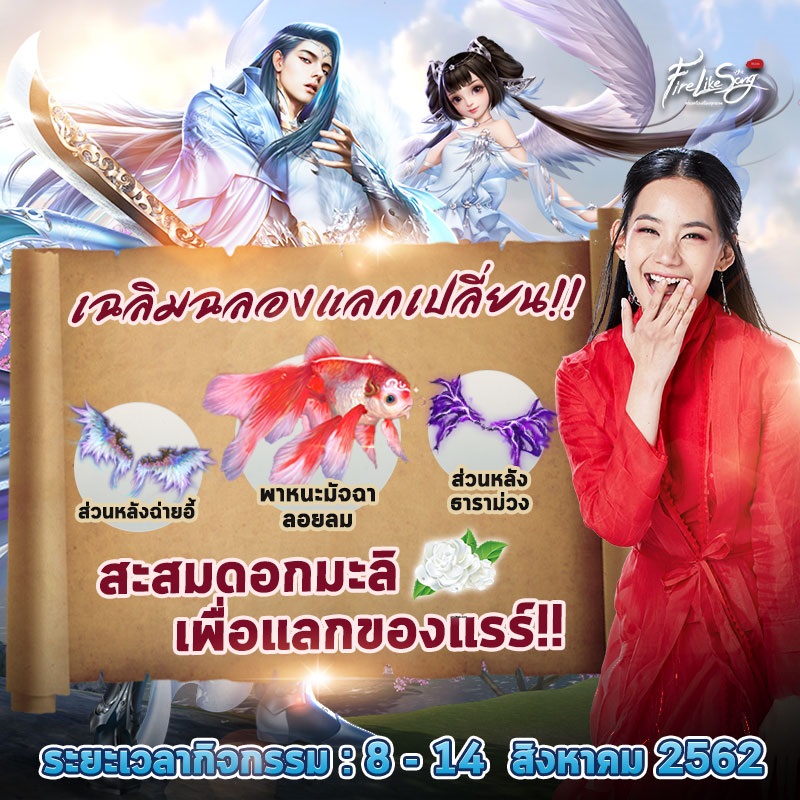 ‘Fire Like The Song’ ร่วมเฉลิมฉลองวันแม่ จัดกิจกรรมแลกดอกมะลิ พร้อมแรร์ไอเทมจัดเต็ม เฉพาะ 8-14 สิงหาคมนี้ เท่านั้น!!!