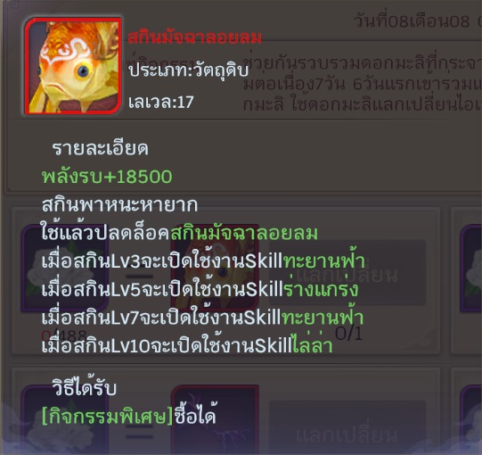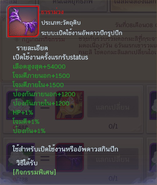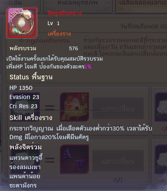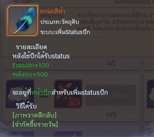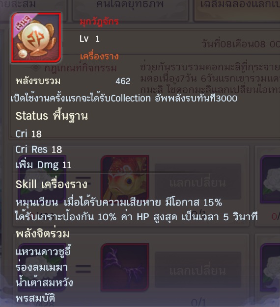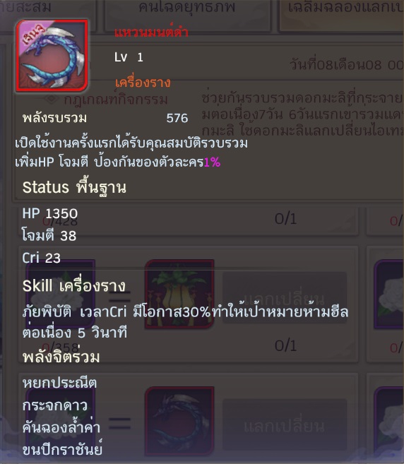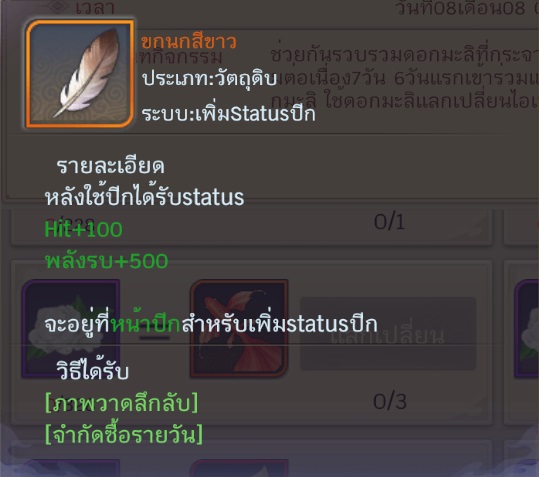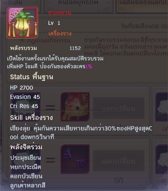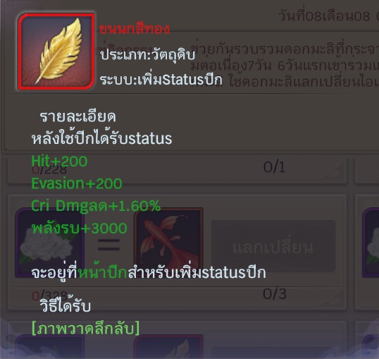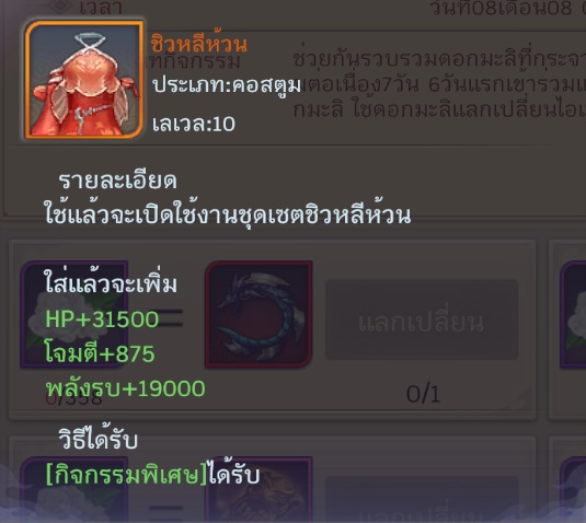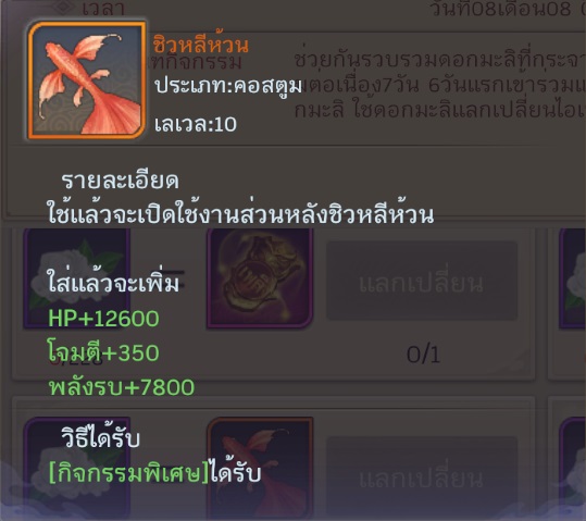 วันที่ 8-13 สิงหาคม บอสดรอปดอกมะลิและนำไปแลกเปลี่ยนไอเทมได้