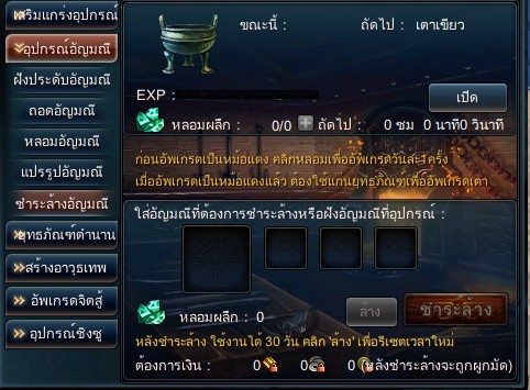 ระบบหินค่ายกล ปลดล็อคเมื่อเลเวล 70 |