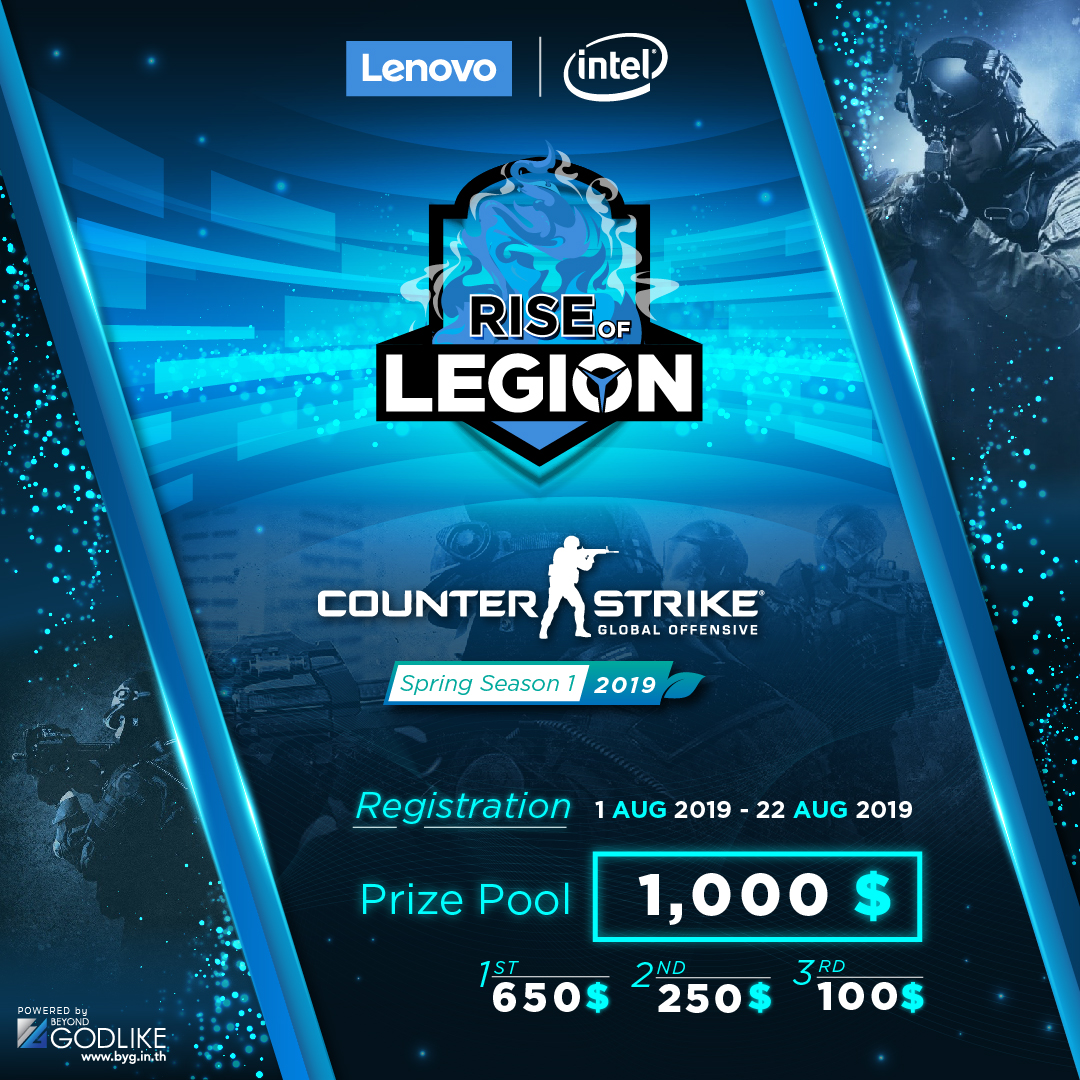 รายการ Rise of Legion : CS.GO เป็นรายการแข่งขันเกม Counter-Strike: Global Offensive ซึ่งเป็นเกมส์ออนไลน์แนว FPS (first-person shooter) ที่มีมานานนับปี แต่ยังคงเป็นที่ชื่นชอบและมีคอมมูนิตี้ผู้เล่นที่เหนียวแน่น ส่งผลให้การแข่งขัน CS:GO เป็นที่นิยมในหลายรายการ รวมถึง Rise of Legion ด้วย และในรายการล่าสุด Rise of Legion : CS.GO SPRING SEASON 1 2019 ที่กำลังจะเกิดขึ้นนี้ก็มีผู้เข้าแข่งขันถึง 90 ทีม เพื่อร่วมชิงเงินรางวัลรวม 1,000 USD สำหรับผลการแข่งขัน สามารถติดตามที่แฟนเพจเฟซบุ๊ก Beyond Godlike ได้เลย