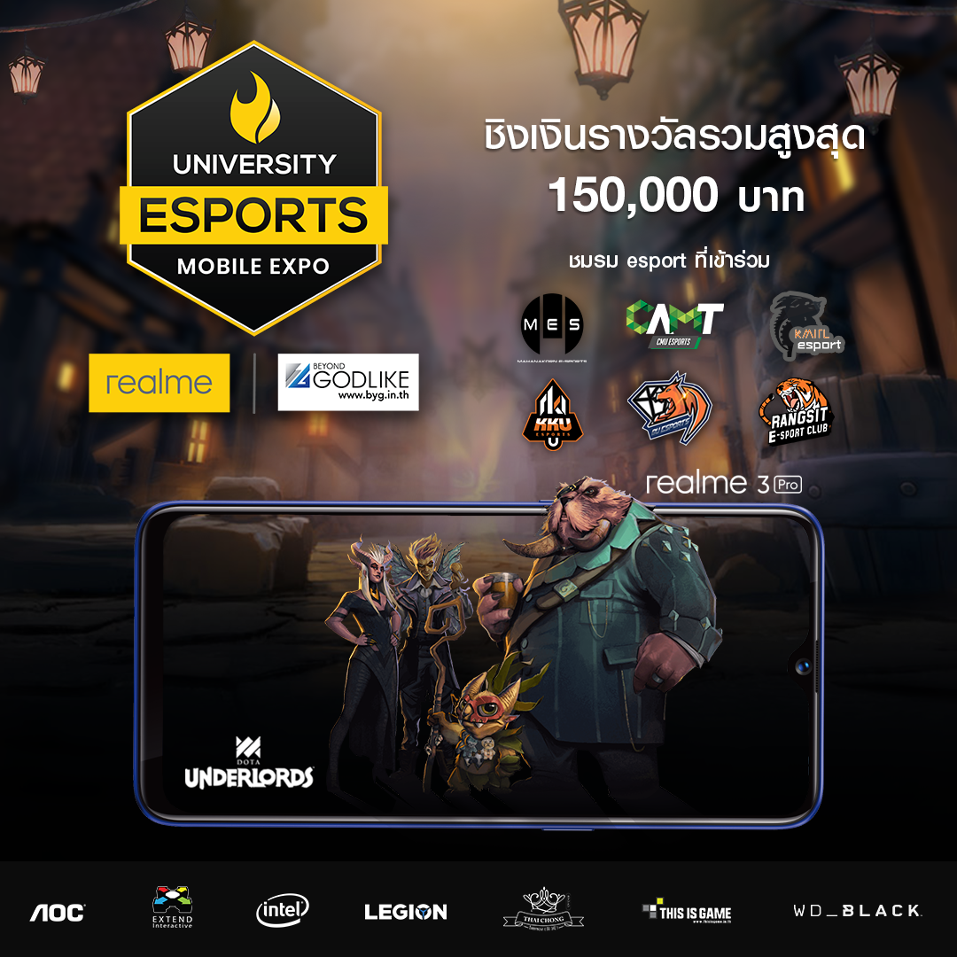 เปิดศึกอีสปอร์ตครั้งยิ่งใหญ่ ในงาน University ESPORT Mobile EXPO by realme โดยในครั้งนี้ realme แบรนด์สมาร์ทโฟนใหม่ล่าสุด ร่วมเป็นผู้สนับสนุนในการแข่งขันเกม Dota Underlord เวอร์ชั่นมือถือ ชิงเงินรางวัลรวมถึง 150,000 บาท และของสุดพรีเมียมจากทาง realme