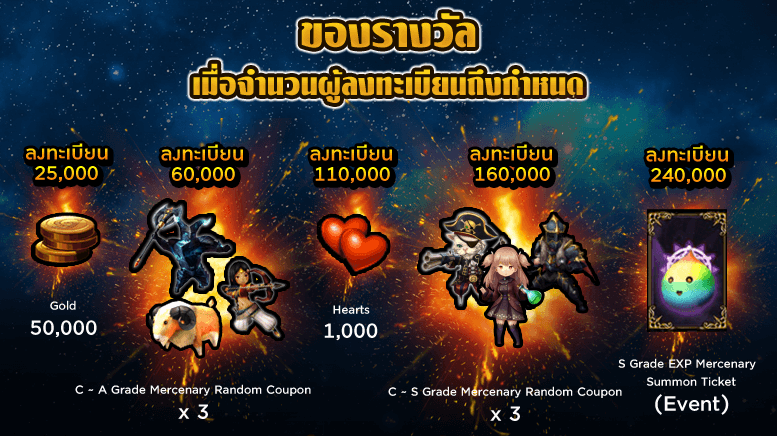 ลงทะเบียนล่วงหน้า Pre-Register ได้แล้ววันนี้ ของรางวัลจะได้รับเมื่อเกมเปิดให้บริการอย่างเป็นทางการ (Open Beta)