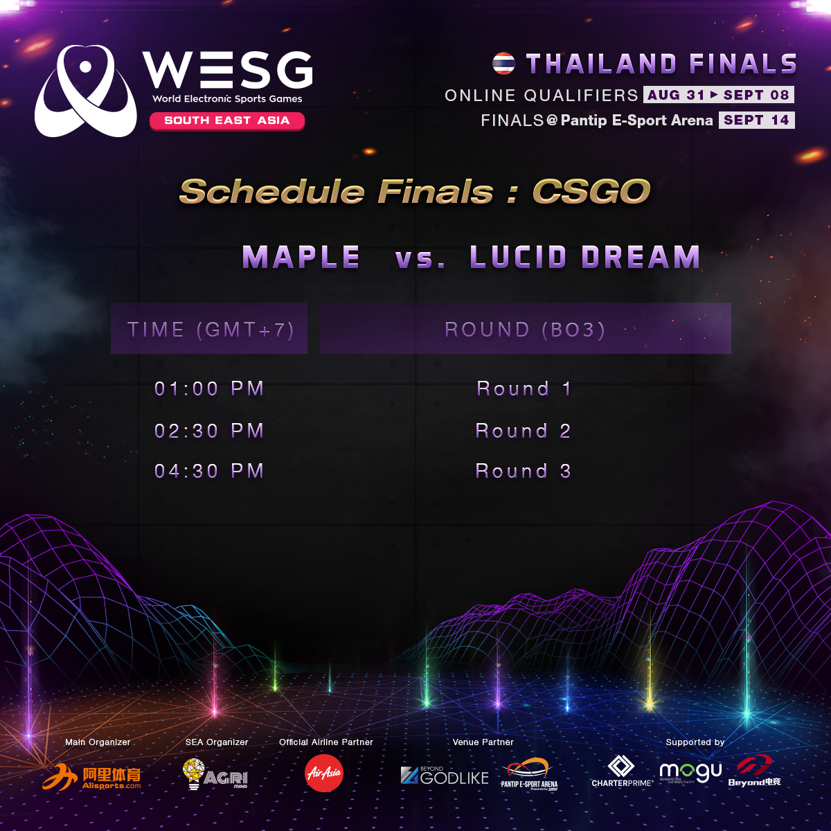 ย้ำอีกครั้ง! รอบ Finals จะจัดขึ้นในวันเสาร์ที่ 14 กันยายน 2562 ณ Pantip E-Sport Arena ชั้น 1 ศูนย์การค้า พันธุ์ทิพย์ ประตูน้ำ ค้นหาตัวแทนไปแข่งในรายการ WESG SEA 2019 REGIONAL FINALS