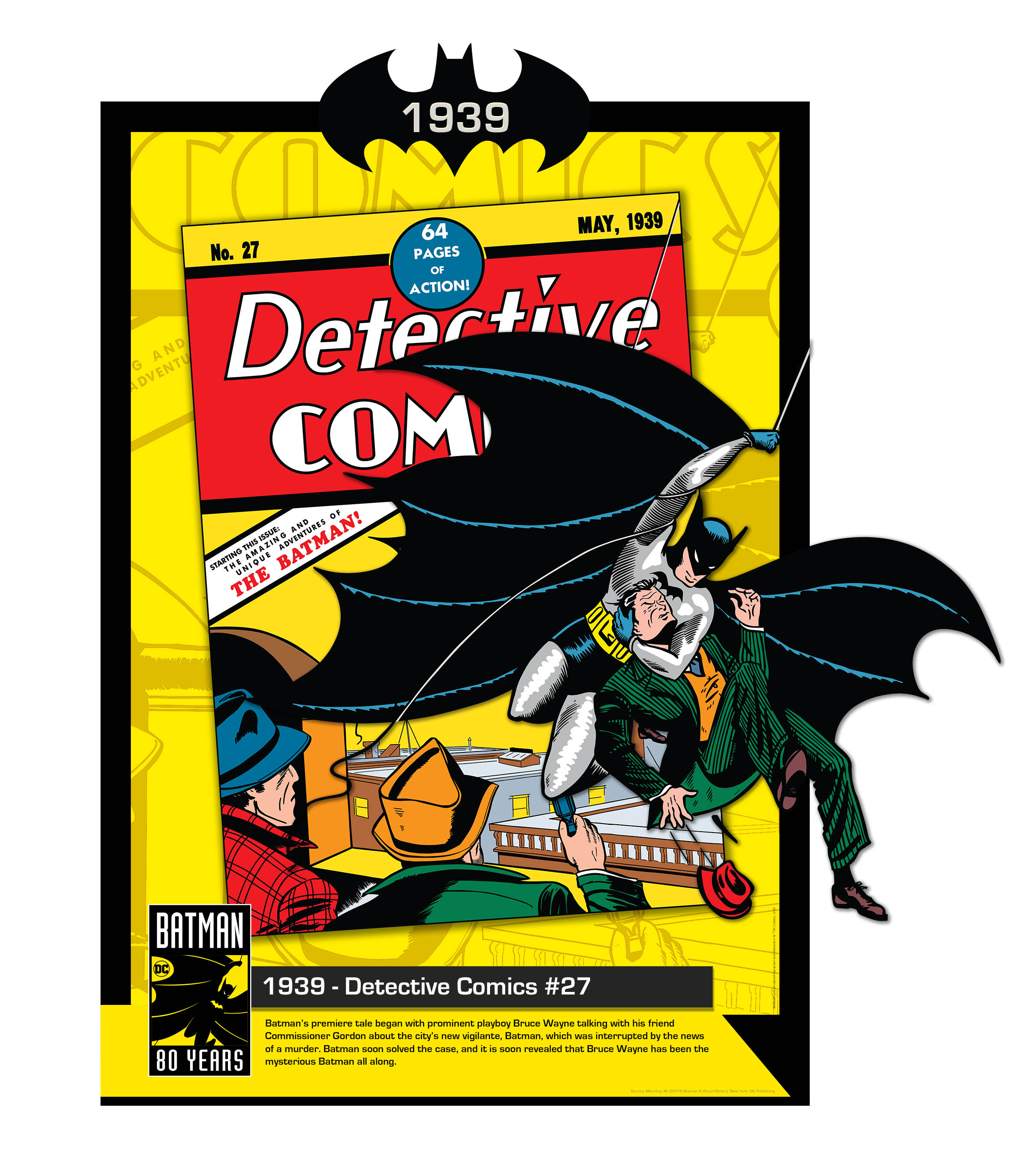 2. แบทแมนออกปรากฏตัวครั้งแรก เมื่อปี 1939 (พ.ศ.2482) ในหนังสือการ์ตูนเรื่อง ดีเทคทีฟ คอมิคส์ (Detective Comics) หลังจากที่เขาปรากฎตัวระยะหนึ่ง แฟนๆ ก็เริ่มเรียกร้องให้มีเรื่องของเขาเอง แบทแมนจึงเริ่มมีเนื้อเรื่องของตัวเอง โดยมีตัวละครอื่นๆ อาทิ โรบิน แบทเกิร์ล โจ๊กเกอร์ ตามมา