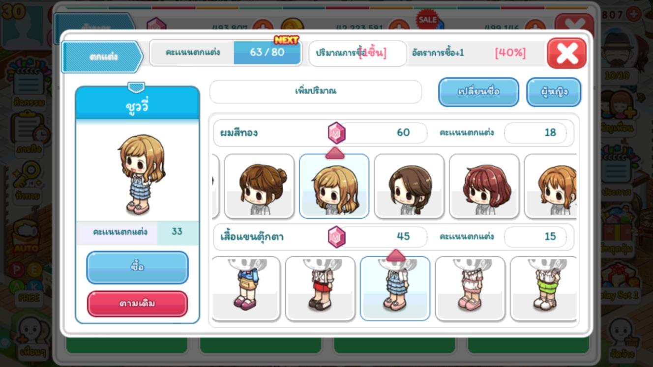 เลือกเฟ้นสินค้ามากมาย แล้วนำมาวางขายในช่วงเวลาที่เหมาะสม เพื่อเก็งยอดขายที่สูงสุด สร้างกำไรเป็นเท่าตัว แถมทำให้ได้รับค่าประสบการณ์ปลดล็อกสินค้าและของตกแต่งร้านเด็ดๆ อีกเพียบ