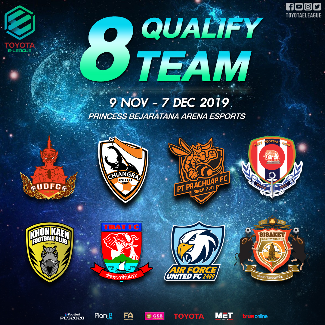 การแข่งขัน TOYOTA E-LEAGUE 2020 รอบคัดเลือก จะทำการคัดเลือกจาก 8 สโมสร ได้แก่สโมสรฟุตบอลสิงห์เชียงรายยูไนเต็ด, สโมสรฟุตบอลขอนแก่นเอฟซี, สโมสรฟุตบอลราชนาวี, สโมสรฟุตบอลพีทีประจวบเอฟซี, สโมสรฟุตบอลศรีสะเกษ, สโมสรฟุตบอลตราดเอฟซี, สโมสรฟุตบอลอุดรธานีเอฟซี และสโมสรฟุตบอลแอร์ฟอร์ซยูไนเต็ดเอฟ ซึ่งจะมีเพียง 3 สโมสรเท่านั้นที่ได้เข้าร่วมกับอีก 7 สโมสร ในรายการ TOYOTA E-LEAGUE 2020 เพื่อค้นหาผู้ชนะที่จะเป็นตัวแทนประเทศไทย ไปแข่งขันรายการอีสปอร์ตเกมฟุตบอลระดับโลก กับเกม eFootball PES2020 รวมถึงเงินรางวัลรวมกว่า 3,000,000 บาท เริ่มจัดการแข่งขันทุกวันเสาร์-อาทิตย์ ตั้งแต่วันที่ 9 พฤศจิกายน – 7 ธันวาคม 2562 ณ PRINCESS BEJARATANA ARENA ESPORTS ธนาคารออมสินสำนักงานใหญ่ (สะพานควาย)