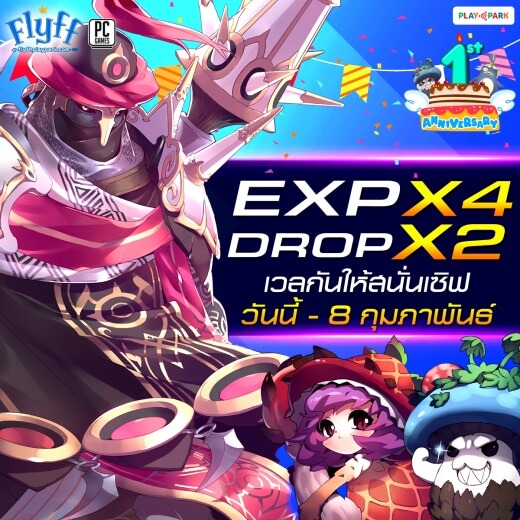 EXP คูณสุดมันส์ฉลองวันครบรอบ 1 ปี เพียงเล่นเกมในช่วงเวลาที่กำหนด จะได้รับทั้ง EXP และ DROP แบบสนั่นทั้งเซิร์ฟ!